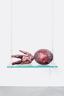 Calze di Nylon, acrilico, poliestere su m.d.f— Nylon stockings, acrylic, polyester on m.d.f 16 x 16 x 16 cm
